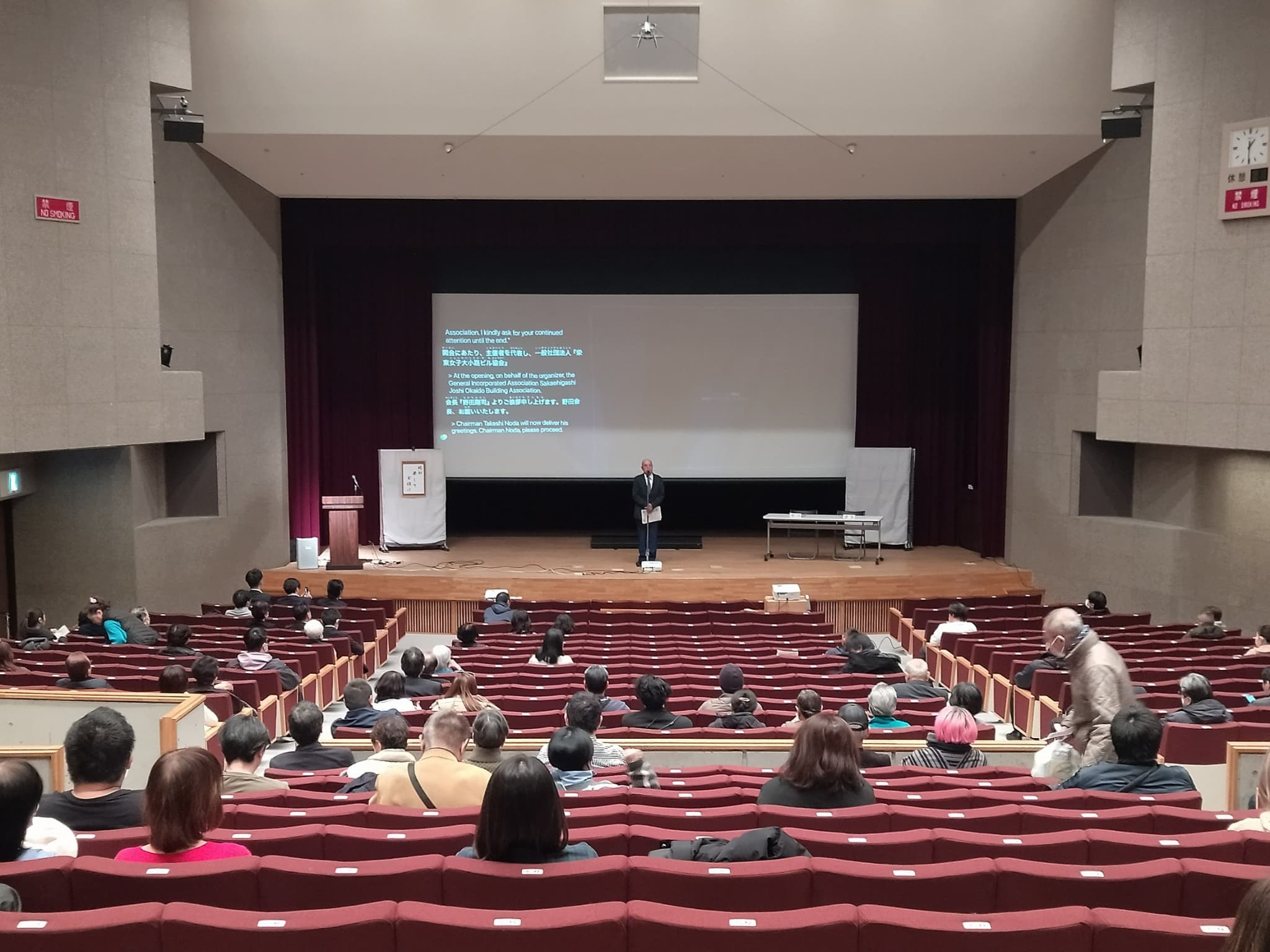 今年度より、日本語が母語ではない外国籍や外国にルーツがある住民・在勤の方などの多様な主体の参加を促すため、講話者の音声をリアルタイムで日本語と英語に翻訳・投影する新たな取り組みも実施しました(株式会社アイシン運営、音声可視化システム「YYSystem」を使用)。